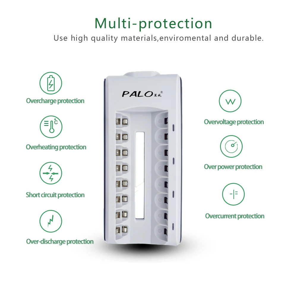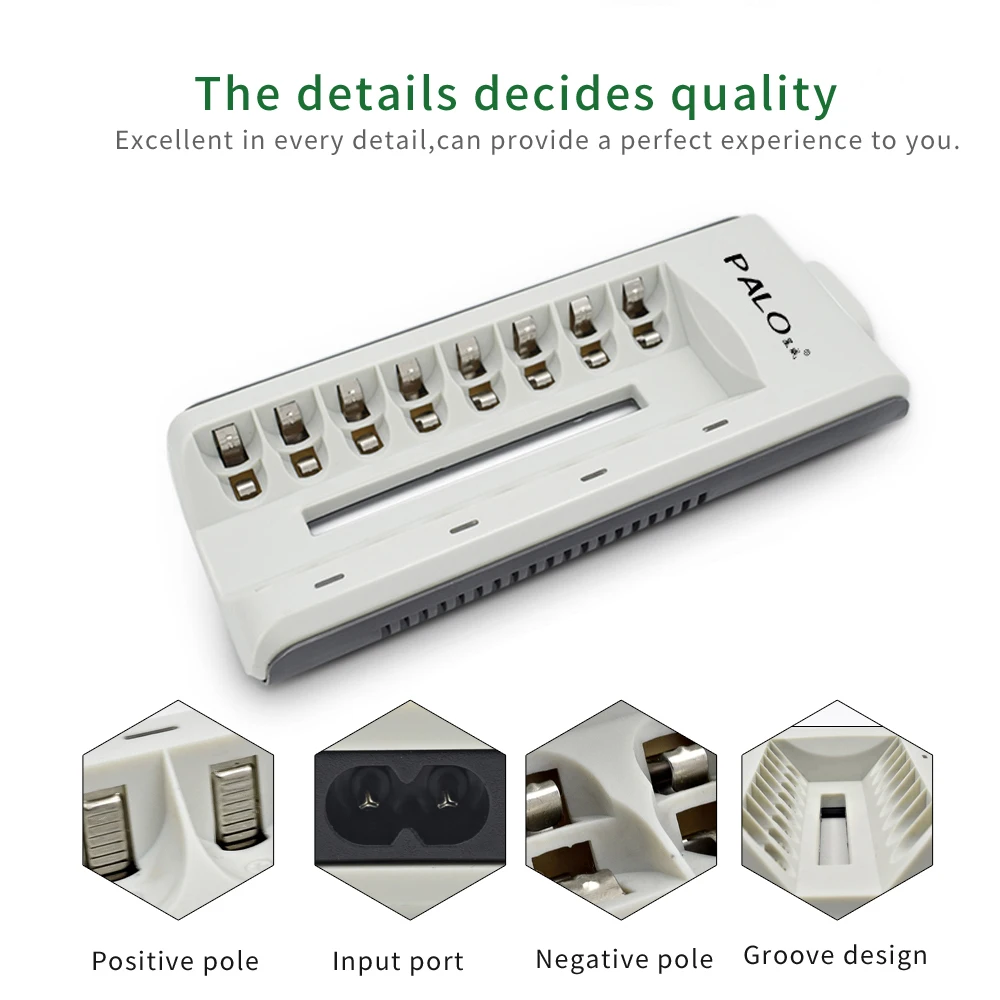 PALO 8 slots nimh nicd battery smart charger fast charge with LED display for 1.2V aa aaa rechargeable battery Quick charger
