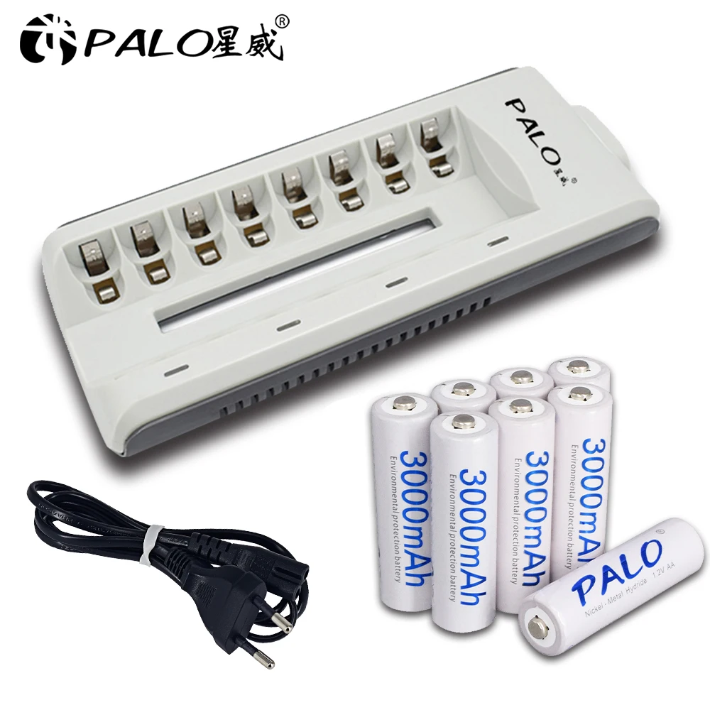 Best Seller 8Pcs PALO NIMH AA Rechargeable Battery aa 3000mAh 1.2V Batteries With Charger for AA AAA NIMH NICD