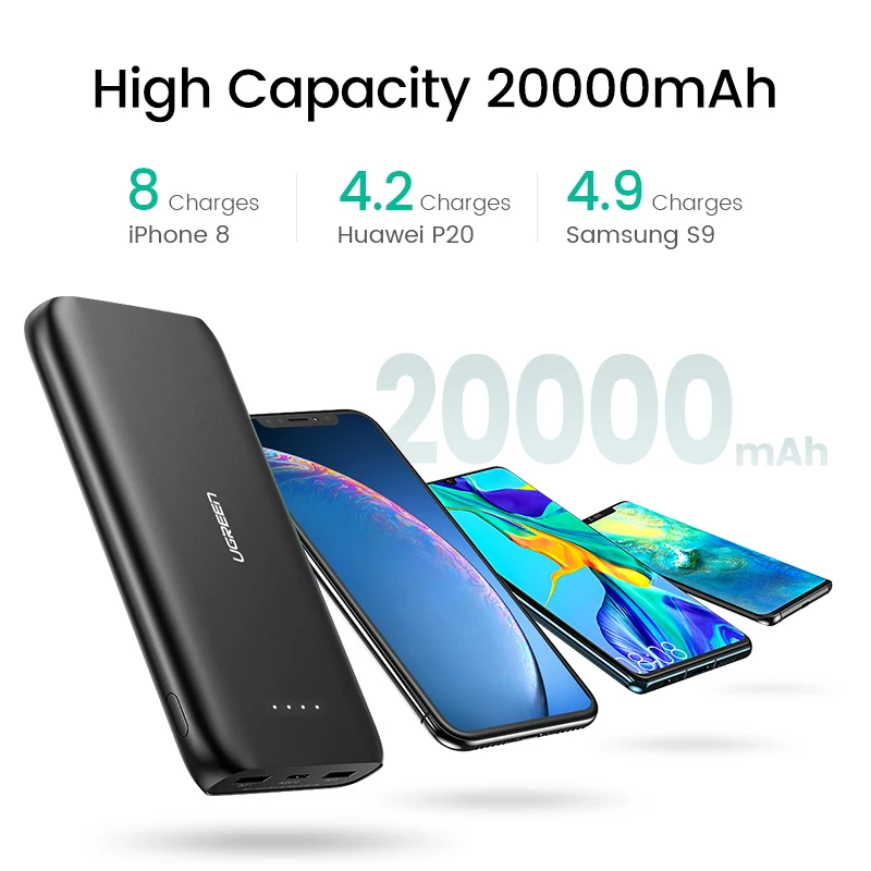 Ugreen Power Bank 20000mAh External Mobile Battery Charger Portable Fast Phone Charger for Samsung S10 iPhone 8 Mini Poverbank