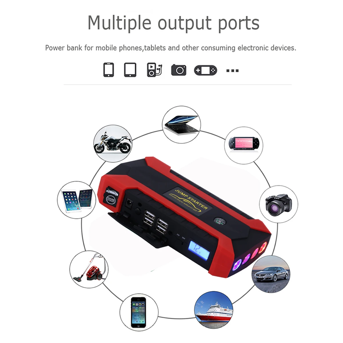 89800mAh 4USB 12V 600A LED Car Jump Starter Portable Emergency Charger Battery Power Bank Car Booster Starting Device Waterproof