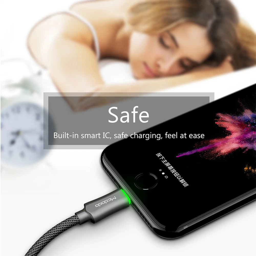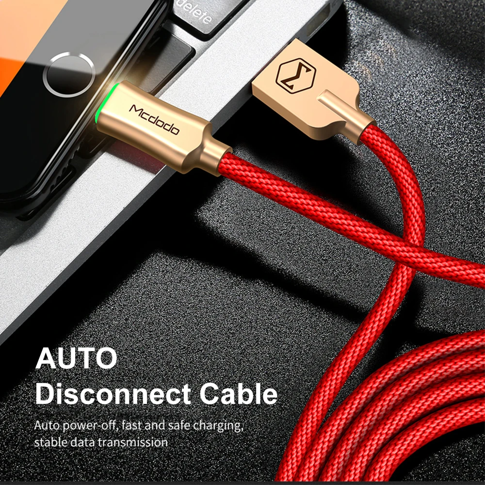 Mcdodo Lightning to USB Cable For iPhone x 7 8 Plus xs max xr Auto Disconnect Fast Charging Data Cable For iPhone 5s 6s with LED